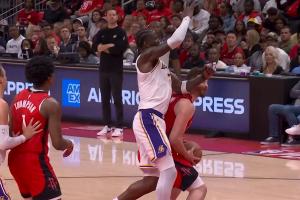 本场比赛第三节,艾顿篮下防守申京肘击申京面部
