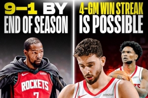 但火箭队并不是侥幸进入季后赛的。他们在赛季末取得了9胜1负的战绩。
