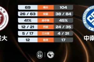 末节比赛,中南大学的进攻更加凶猛,将自己的单节得分提升到30+,同时由于分差过大在防守端也略有松懈,西藏民大也终于将自己的单节得分首次达到20+,最终中南大学104-69大胜西藏民大。