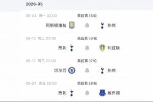 体育资讯4月26日讯 在剩余四轮英超赛程中,西汉姆联将先后对阵布伦特福德、阿森纳、纽卡斯尔联和利兹联;热刺将先后对阵阿斯顿维拉、利兹联、切尔西、埃弗顿。