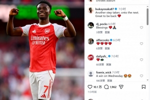 萨卡社媒晒出照片,配文:“又迈出了一步,继续前进。很高兴回归。”